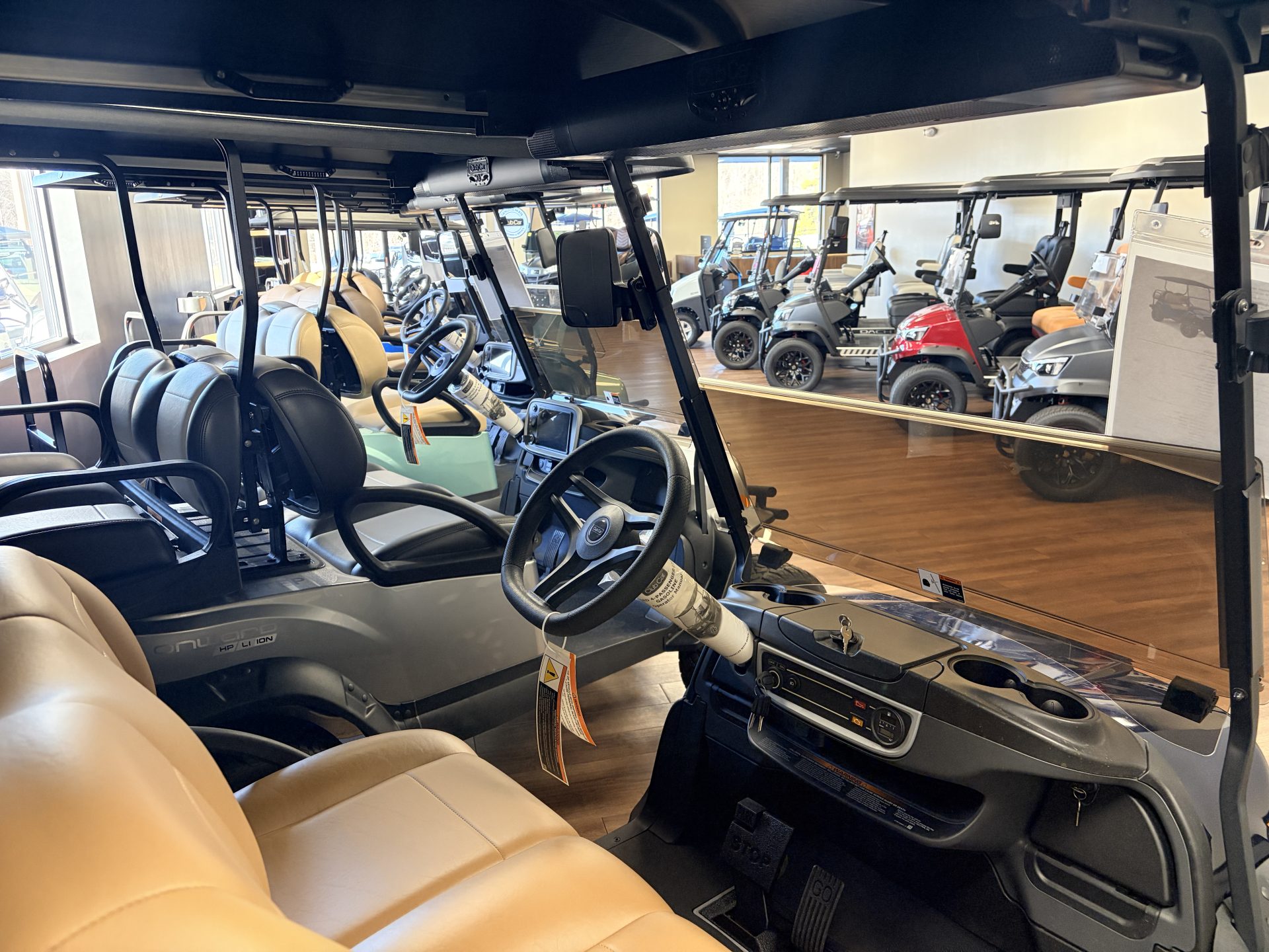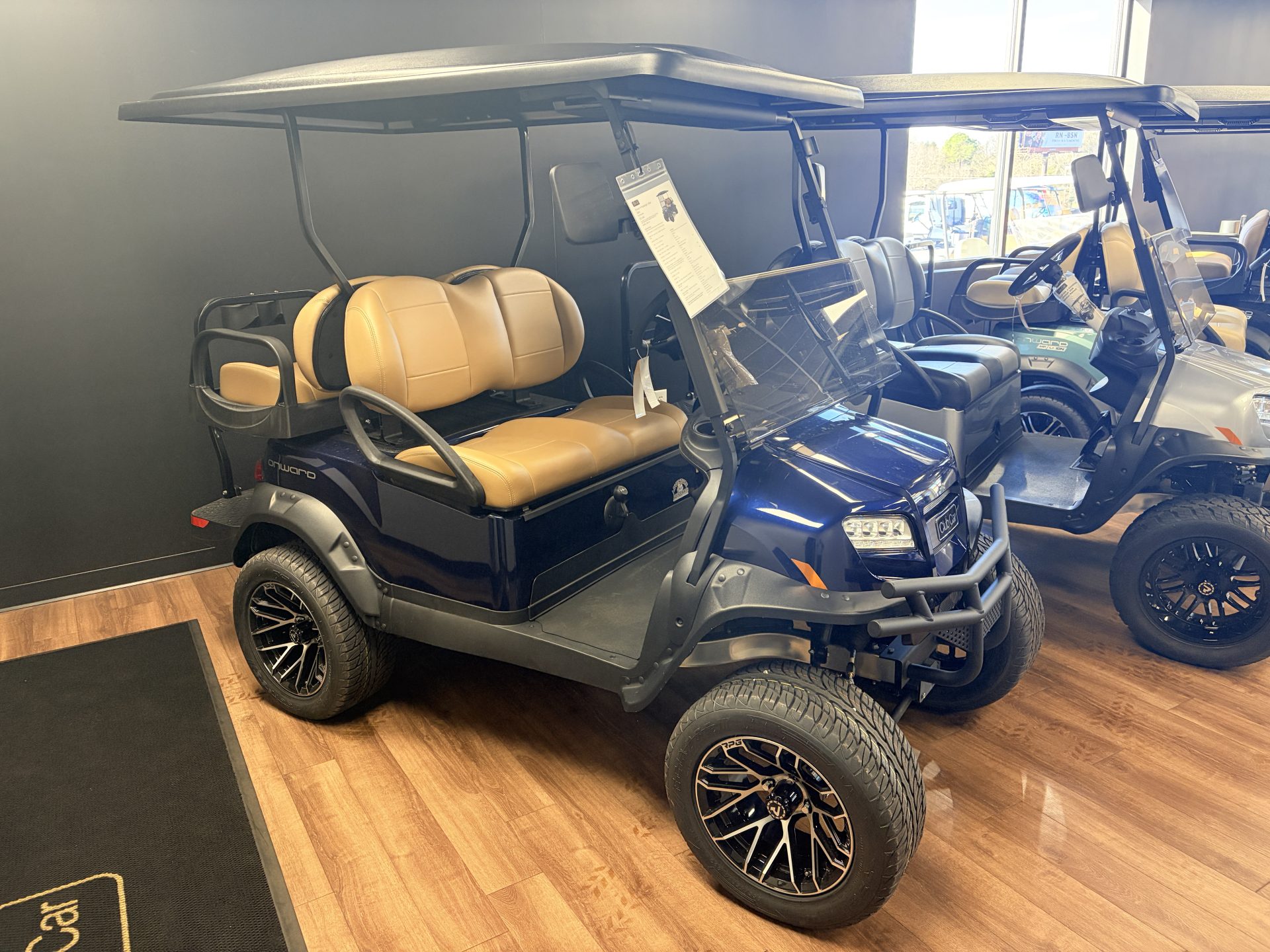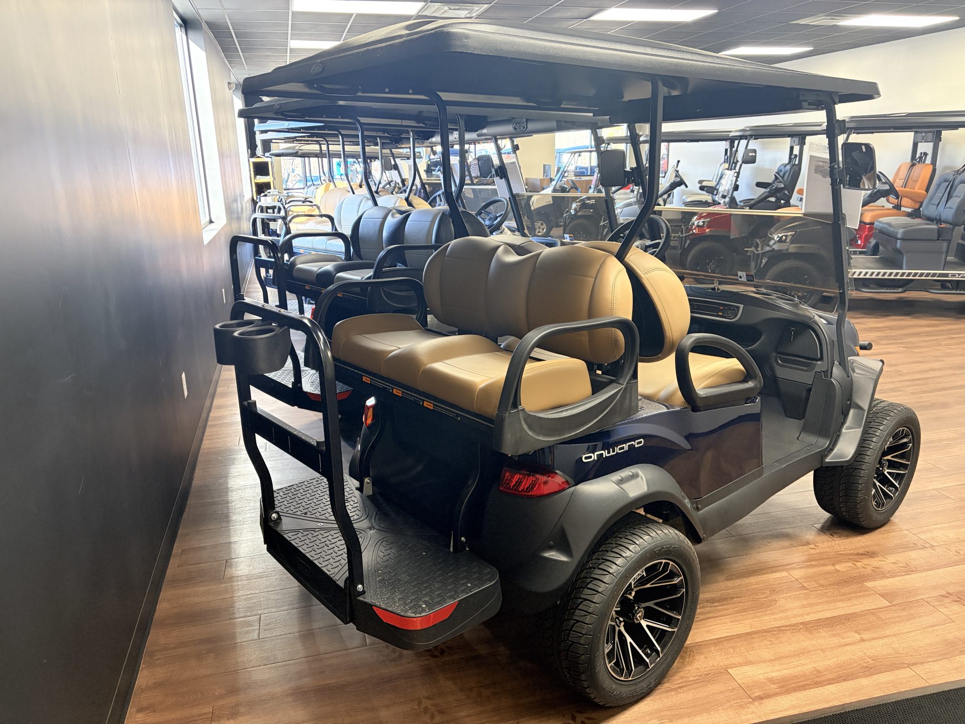 Stand out in style with this 2026 Club Car Onward 4 Passenger in Metallic Blue Onyx paired with Premium Camello Seats. Powered by a 429 Cc Kohler Engine.