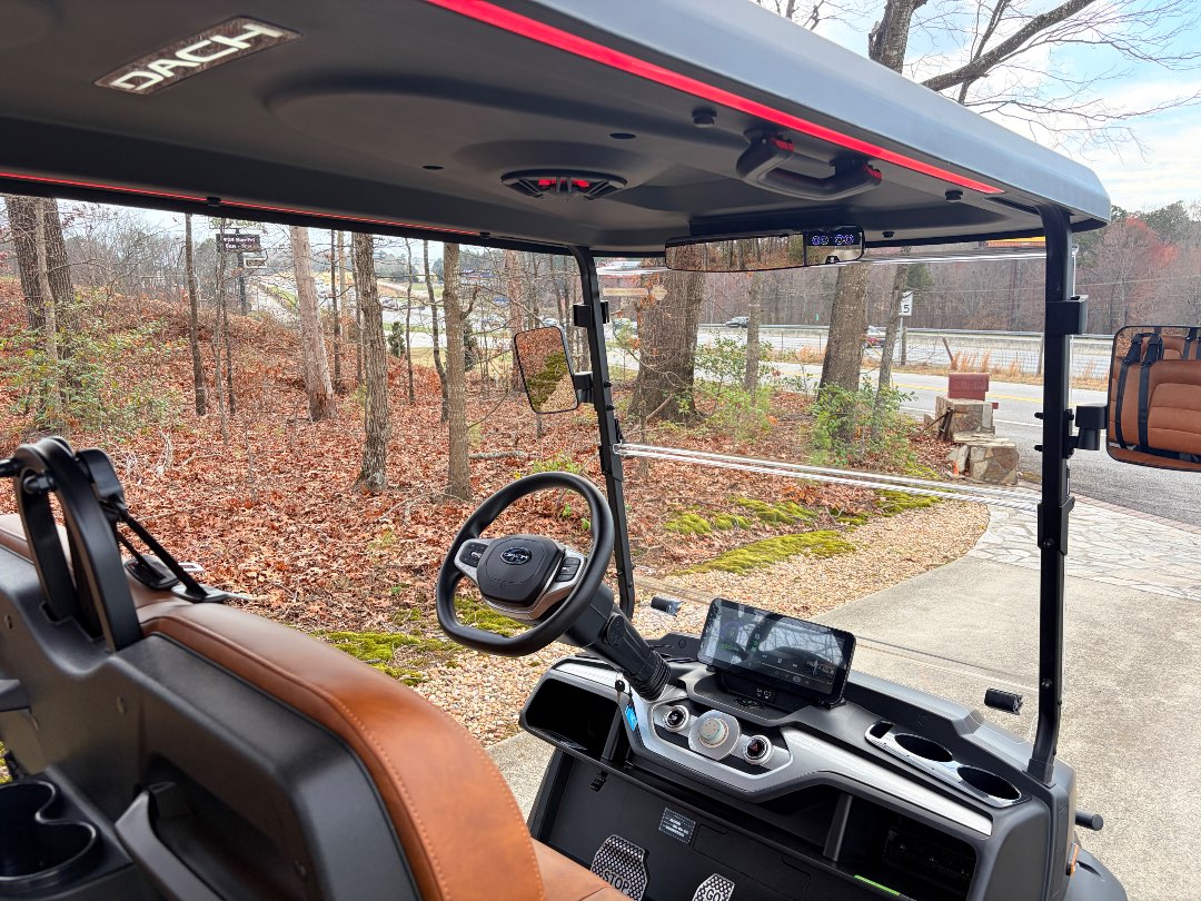 • Dach Apollo model is the first in the industry to incorporate cruise control functionality into a golf cart. The cruise control function greatly enhances comfort and convenience when driving a golf cart. By automatically maintaining a set speed, the driver doesn’t need to constantly press the accelerator, making long drives or longer routes much easier, especially on golf courses or community roads. Additionally, this feature helps improve stability and safety, reducing driver fatigue and ensuring a smoother driving experience.